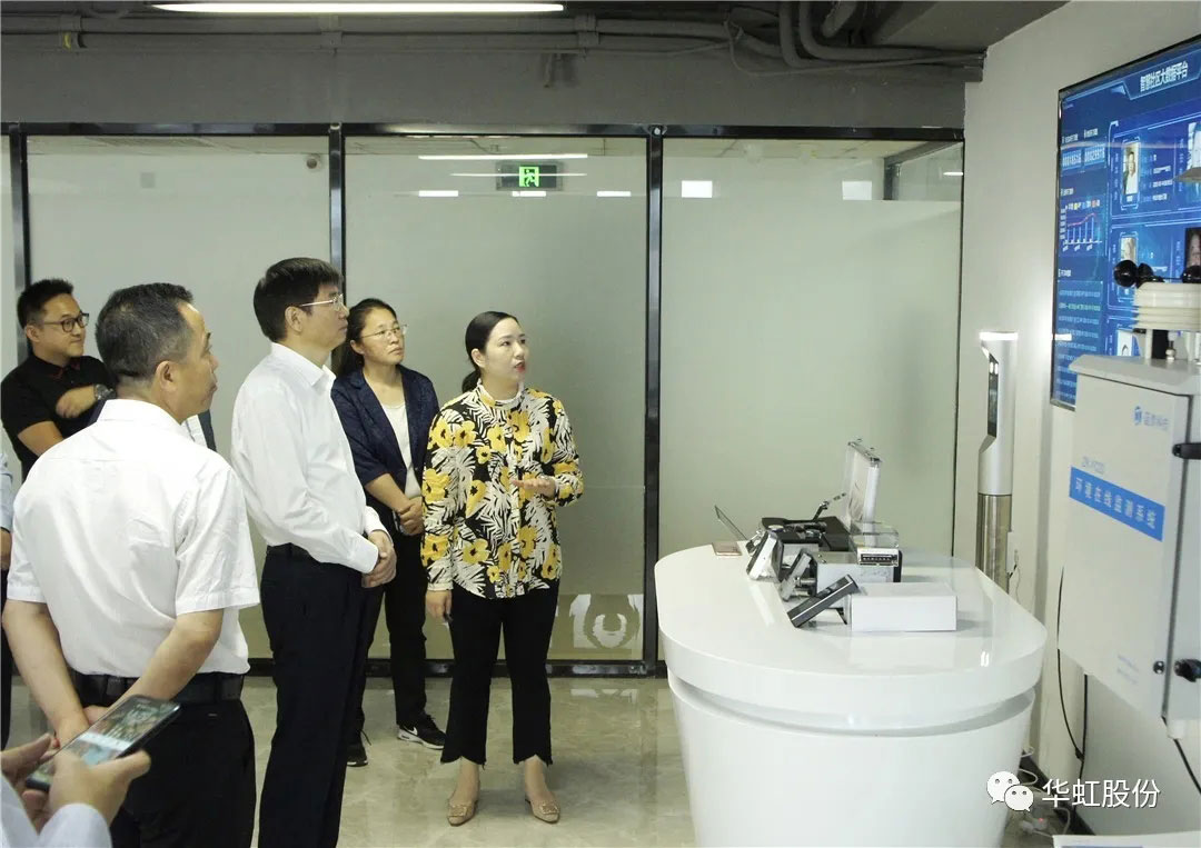 徐書記一行首先參觀了華虹控股公司信息化事業部、福州華智信科技有限公司、福州藍泰環??萍加邢薰?。華智信總經理洪小玲、藍泰總經理林旋鋒、信息化事業部總監黃少澤分別匯報了業務發展情況,并重點展示了特色主營產品。