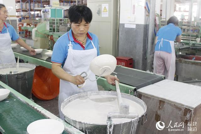 德化協(xié)發(fā)光洋的生產(chǎn)車間內(nèi),工人們正在搖釉。林東曉攝